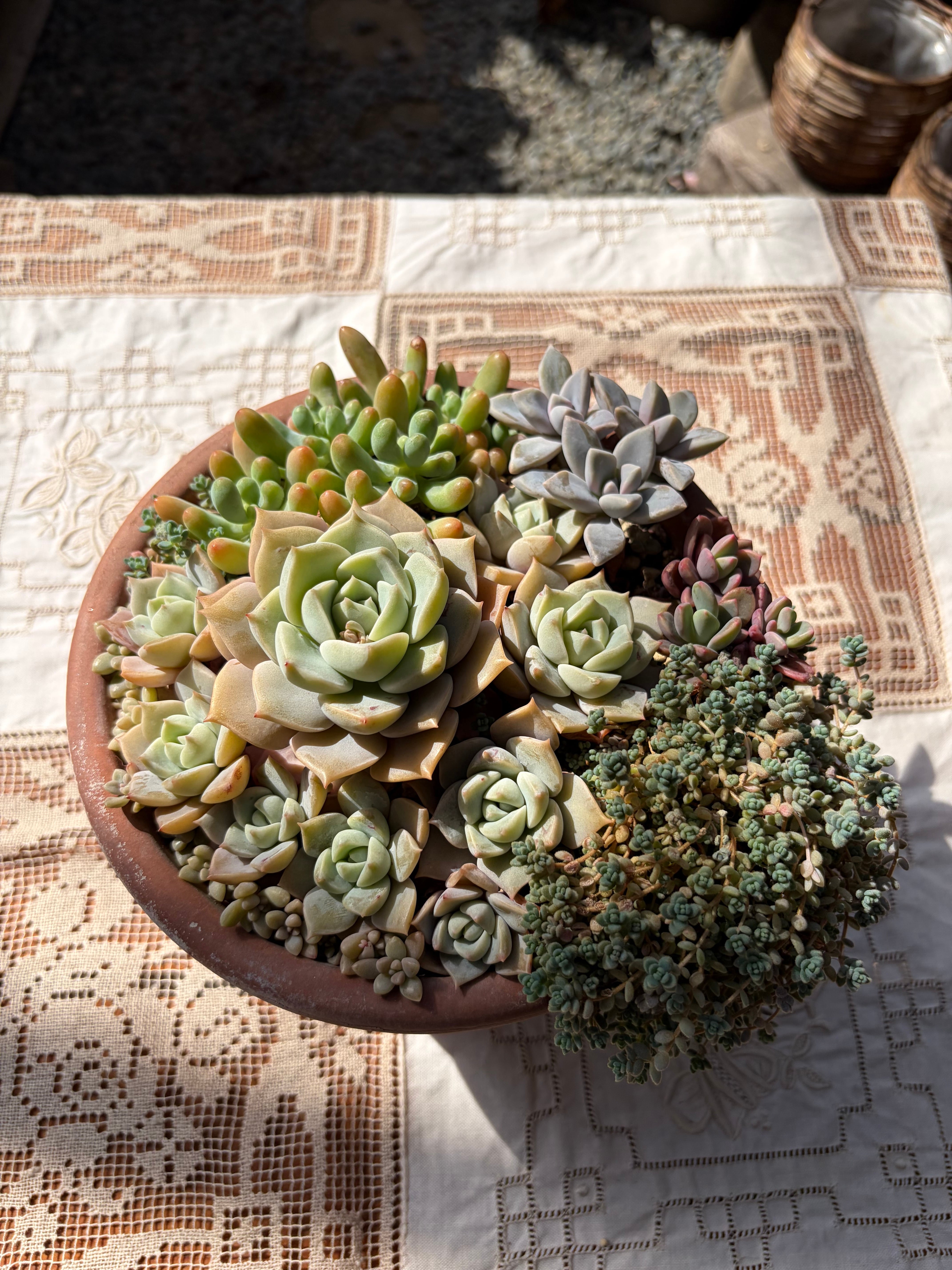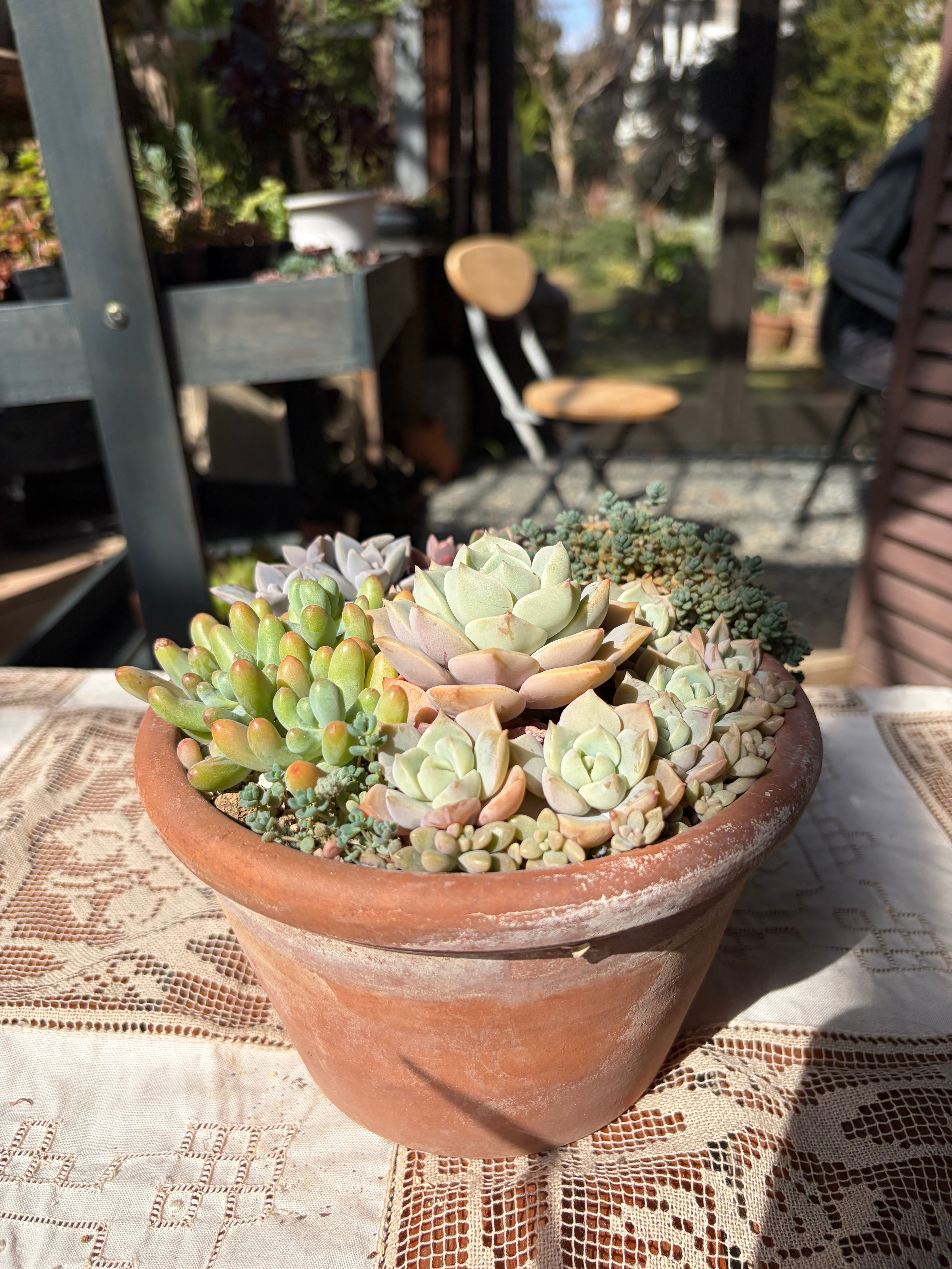 自家栽培の美しい多肉植物を使った、テラコッタポット多肉アレンジメントです。